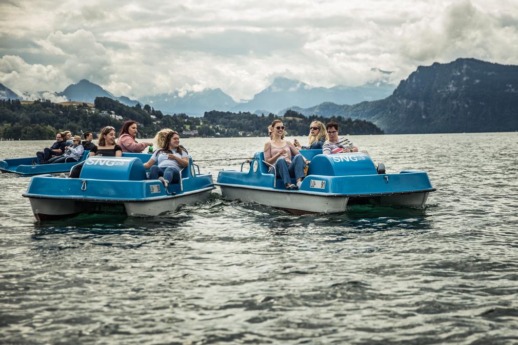 Dank grosszügigem Trinkgeld von unseren geschätzten Gästen, konnten wir am 11. Juli wieder einmal einen Teamevent durchführen. Der Ausflug führte uns an den Vierwaldstättersee, wo wir während 1,5 Stunden mit 5 Pedalos unterwegs waren. Nach einem kurzen Fussmarsch erreichten wir das Montana Bähnli, das uns zum aussichtsreichen Hotel Montana brachte. Bei einem feinen 3-Gang Menü und gutem Wein haben wir die Vorzüge einer ausgezeichneten Gastronomie genossen. Es ist uns eine Freude, unsere Mitarbeitenden auch ausserhalb der Arbeit zu wertschätzen und Momente gemeinsam zu erleben, die nicht alltäglich sind.